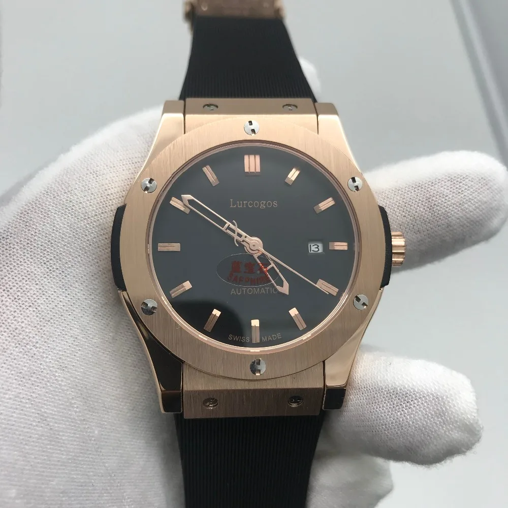 المنتجات ذات الصلة ل Mechanical Watches و 7 أنواع رجالي فاخر ساعات آلية 42 مللي متر الإنزلاق السلس الذهب حالة أسود الهاتفي ساعة بحزام مطّاطي الياقوت الزجاج AAA + الرياضة ووتش