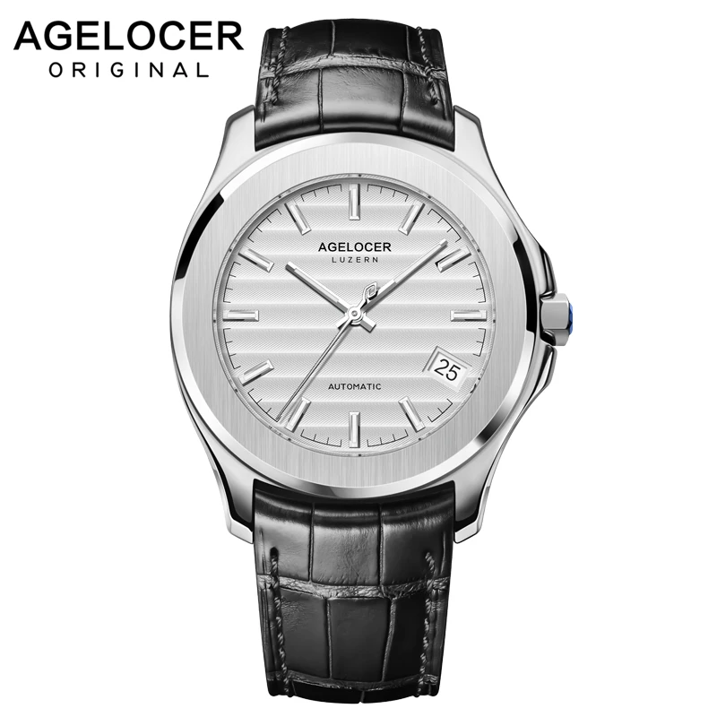 استعارات ل سويسرا الرجال التلقائي ساعات آلية السويسري AGELOCER الفضة الفولاذ المقاوم للصدأ اللباس أزياء رجالي الذكور ساعة معصم ساعة