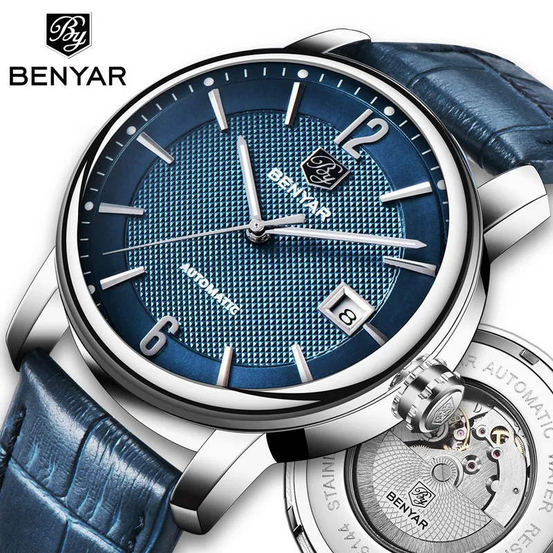 المنتجات ذات الصلة ل Mechanical Watches و BENYAR 2018 جديد قمة الموضة الفاخرة العلامة التجارية جلدية ووتش التلقائي الرجال ساعة اليد الرجال الميكانيكية الصلب الساعات Relogio Masculino