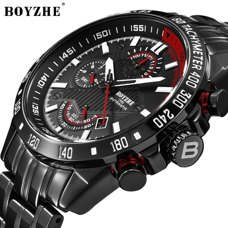 البحث عن معلوماتمعلومات اضافية BOYZHE ووتش الرجال الفاخرة للماء التقويم مضيئة مؤشر متعددة الوظائف ساعات آلية التلقائي ووتش الرجال الصلب ساعة