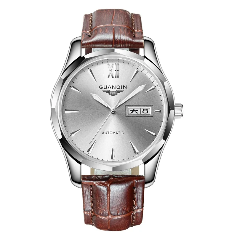 استعارات من GUANQIN التلقائي الميكانيكية الرجال ووتش التنغستن الصلب مضيئة الساعات تاريخ التقويم اليابانية ساعة يد تعمل بالحركة مع جلد حزام