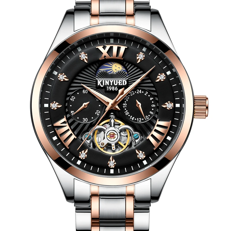 وانت porشراء Mechanical Watches, luego KINYUED جديد التلقائي العسكرية ووتش الرجال القمر المرحلة الذاتي الرياح للماء رجل ساعات آلية Tourbillion ل Montre لوكس أوم tal vez hacer appeal