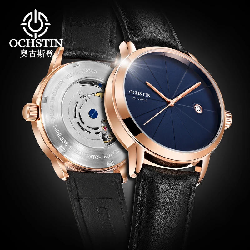 البحث عن معلوماتمعلومات اضافية أعلى العلامة التجارية OCHSTIN ساعة رجالية فاخرة أسلوب بسيط التلقائي الميكانيكية ووتش للذكور ساعة التسجيل الصلب جلدية الطلب المعصم الساعات