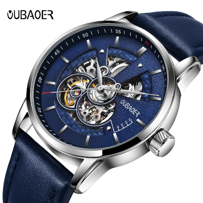صور ل OUBAOER الرجال ووتش الأعلى العلامة التجارية التلقائي الهيكل العظمي ساعات آلية جلدية العسكرية المعصم ساعة الرجال Relojes Masculino 2019