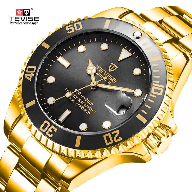 استعارات ل Tevise أعلى العلامة التجارية الرجال ساعات آلية التلقائي الأعمال الفولاذ المقاوم للصدأ ووتش Fashione الفاخرة الذهب ساعة Relogio Masculino