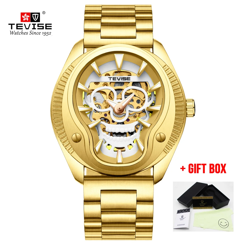 وانت enشراء Mechanical Watches, entonces الرجال الساعات Tevise ساعات آلية الذهبي الجمجمة النحت للماء الذكور ساعة اليد للرجال Relogio Automatico masculino es posible ganar like