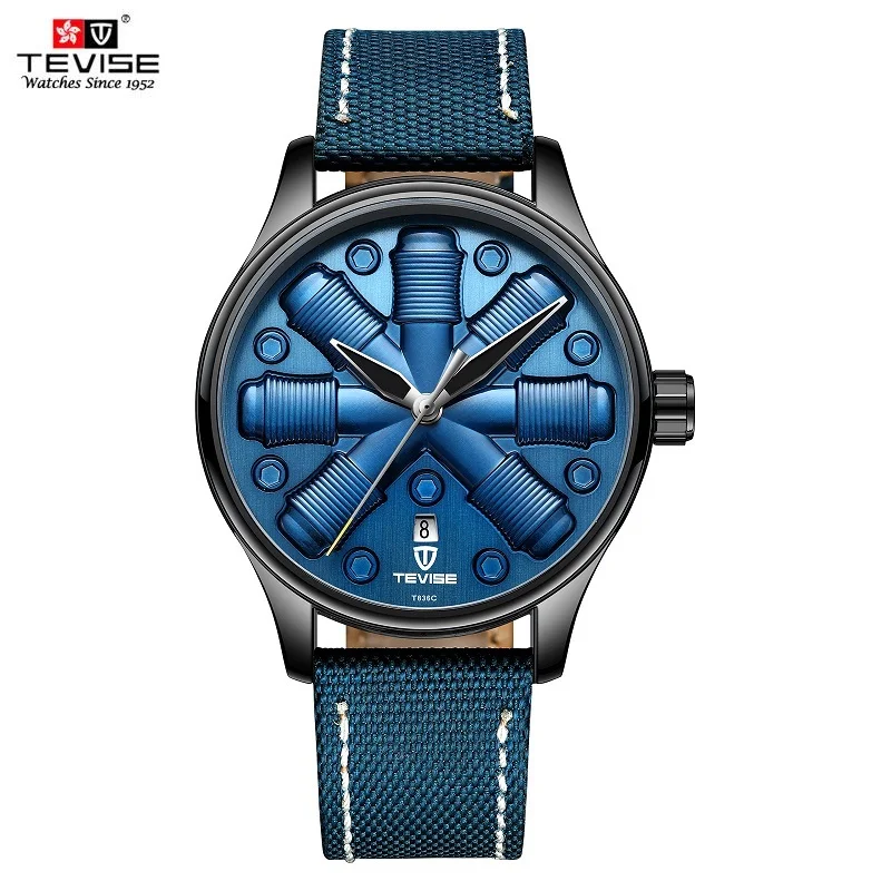 استعارات ل TEVISE T836C خاص التلقائي ووتش رجل الأزرق العلامة التجارية الفاخرة الميكانيكية ووتش الذكور رجل الساعات مضيئة الأيدي تاريخ دروبشيبينغ