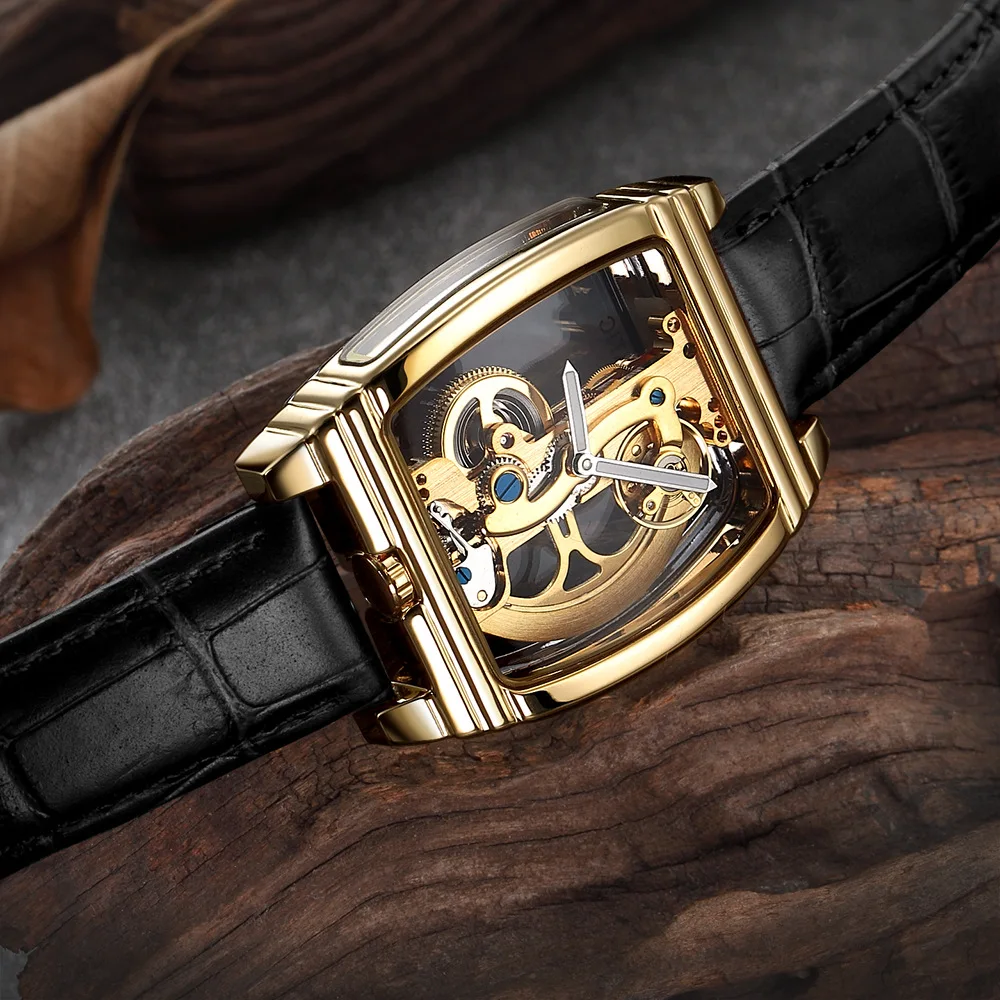 وانت paraالبحث عن معلومات Mechanical Watches, en ese momento الفاخرة شفافة واحدة جسر الميكانيكية ووتش الرجال أعلى العلامة التجارية شينهوا الذهب ساعة معصم التلقائي الذاتي لف اللباس الساعات tal vez ganar please