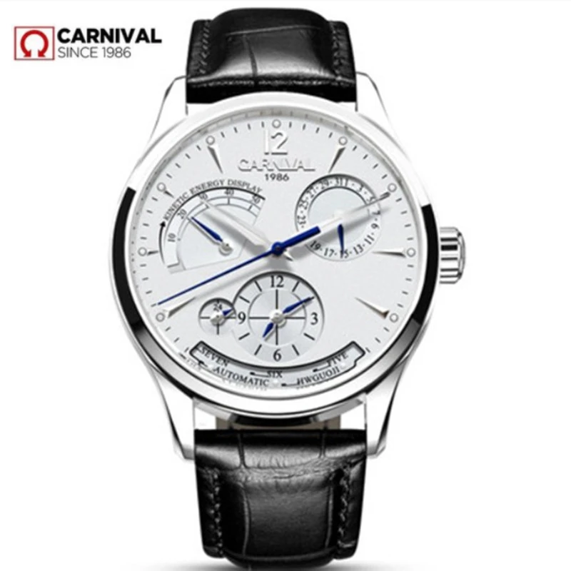 صور من الأصلي كرنفال الأزياء الرجال ووتش الأعلى العلامة التجارية أوتوماتيكي متعدد الوظائف ووتش الرجال تقويم للماء مضيئة ساعات آلية