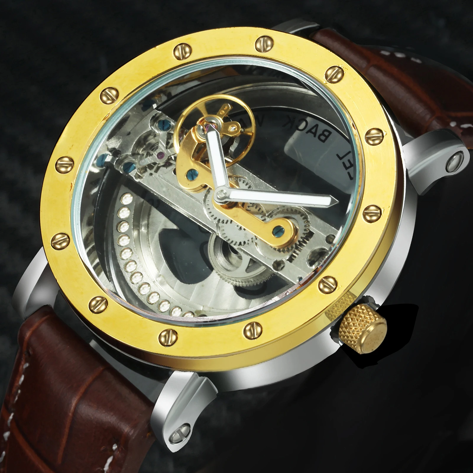 شراءمعلومات اضافية الفائز أعلى العلامة التجارية الفاخرة رجل الساعات الكلاسيكية التلقائي جسر غولدن الميكانيكية ووتش اليابان حركة منحوتة الجلود حزام ساعة