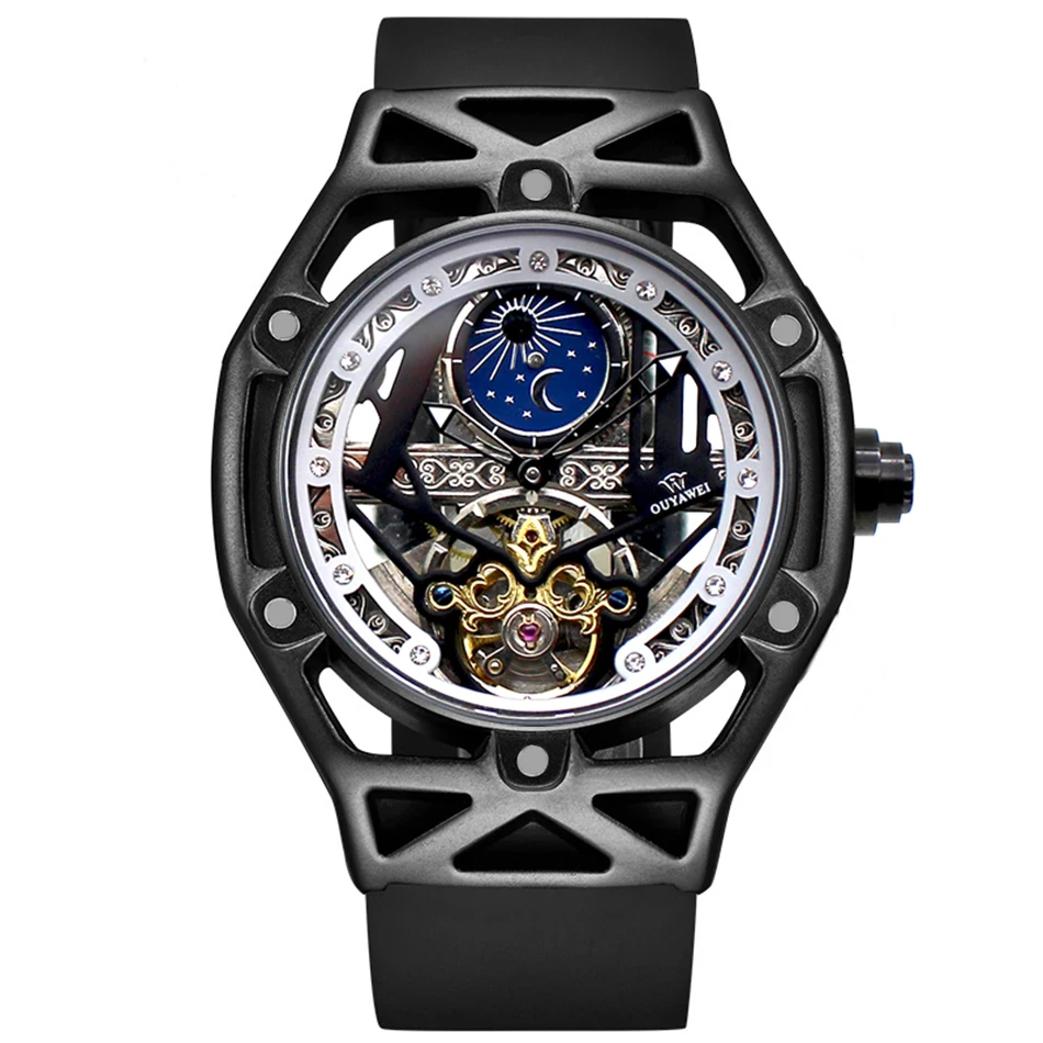 أرغب في شراءمعلومات اضافية OUYAWEI الشمس والقمر التلقائي رجل الأعمال الميكانيكية ووتش الأعلى العلامة التجارية الفاخرة توربيون ووتش الهيكل العظمي ساعة اليد Gif relogio