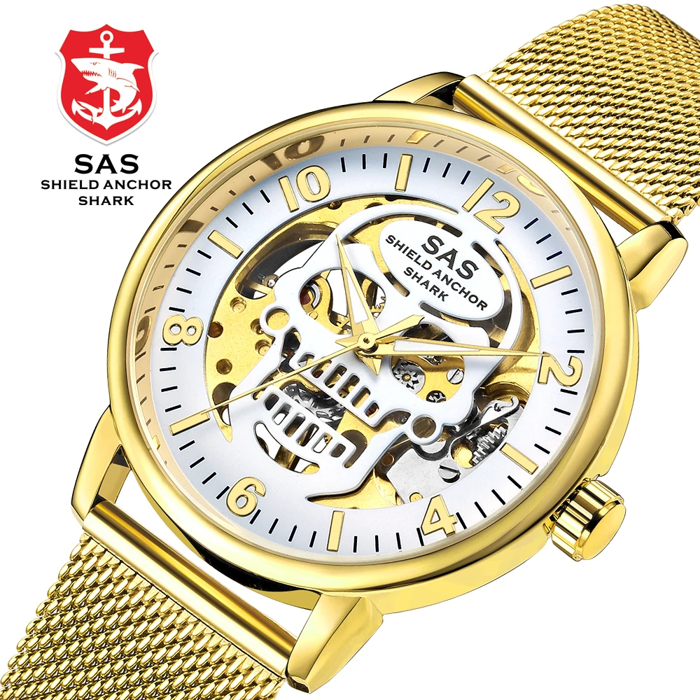معرض من 2019 جديد الجمجمة الميكانيكية ووتش الرجال الفاخرة الفضة الذهب الهيكل العظمي ساعة معصم مضيئة للماء الرياضة الساعات ساعة reloj هومبر