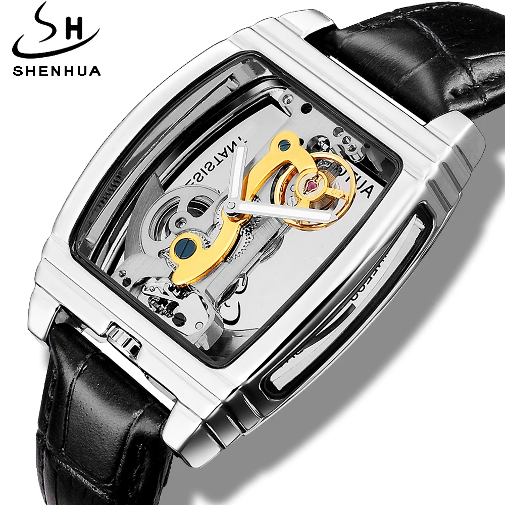 صور من شينهوا 2019 أزياء رجالي شفافة ووتش التلقائي الميكانيكية ووتش الرجال Steampunk من جلد الذات لف ووتش montre أوم