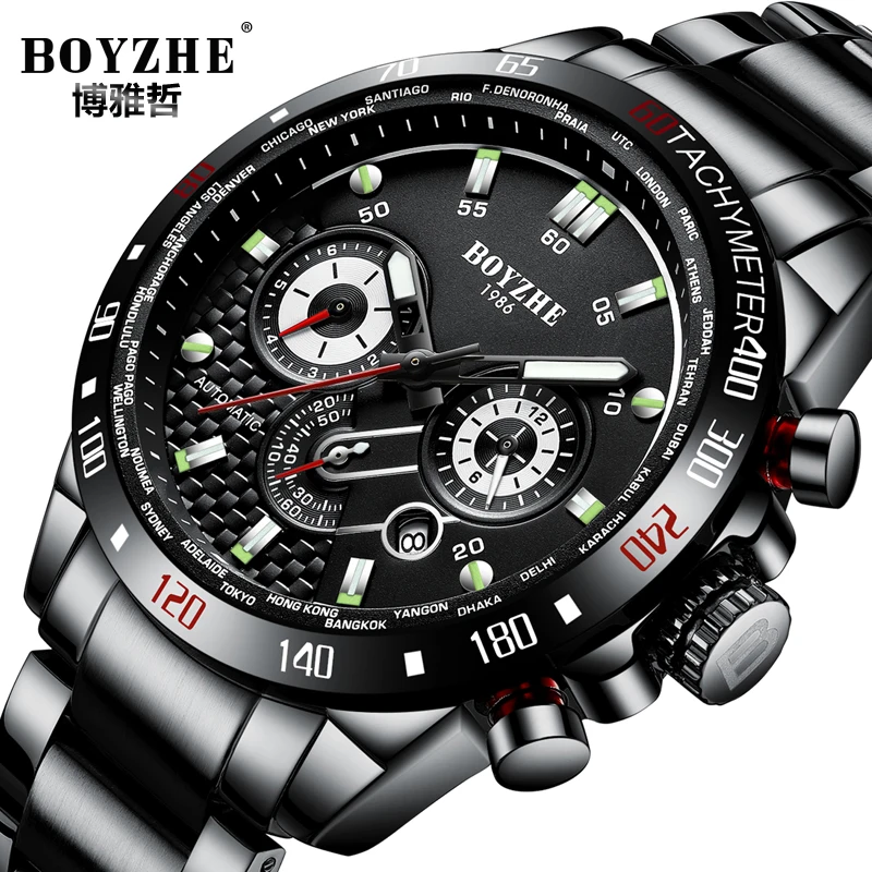 أرغب في شراءمعلومات اضافية BOYZHE متعددة الوظائف الميكانيكية ووتش الرجال الفاخرة العلامة التجارية الفولاذ المقاوم للصدأ التلقائي ساعة اليد الرياضة كبيرة الهاتفي relogio ...
