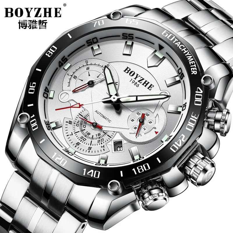 أعلى العلامة التجارية BOYZHE Relogio الرجال التلقائي ساعات آلية الرجال ووتش الرياضة العسكرية الأعمال عارضة الصلب المعصم ساعة