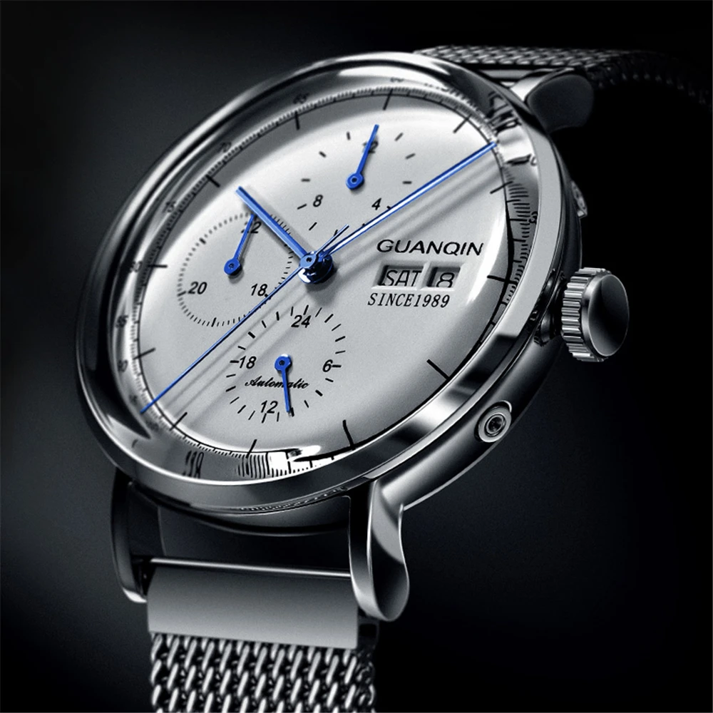 أرغب في شراءمعلومات اضافية GUANQIN الميكانيكية ووتش الرجال الفاخرة ساعة أعلى العلامة التجارية شبكة من الاستانلس استيل حزام للماء التلقائي ووتش الرجال Erkek كول الساعاتي