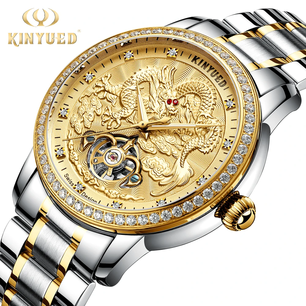 البحث عن معلوماتمعلومات اضافية KINYUED أعلى العلامة التجارية الفاخرة ساعات آلية رجل التلقائي Tourbillion ل الهيكل العظمي ووتش الفولاذ المقاوم للصدأ للماء ووتش mannen