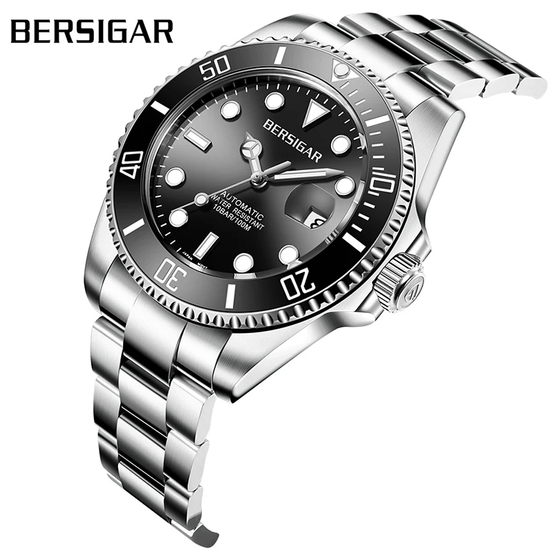 استعارات من Relogio Masculino BERSIGAR ساعة رجالي الغوص ووتش الرجال الفولاذ المقاوم للصدأ للماء الرياضية الأعمال التلقائي الميكانيكية ووتش