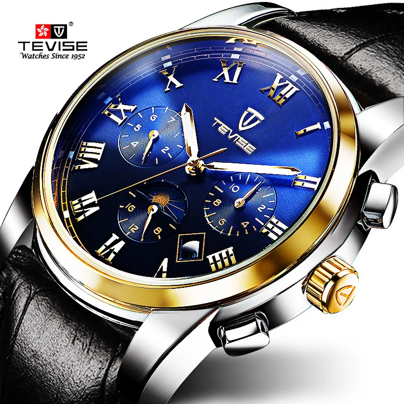 أرغب في شراءمعلومات اضافية TEVISE الميكانيكية ووتش الرجال القمر المرحلة مضيئة 30 m للماء تاريخ التلقائية ووتش الذكور الصينية العلامة التجارية الساعات 2017 الأزياء