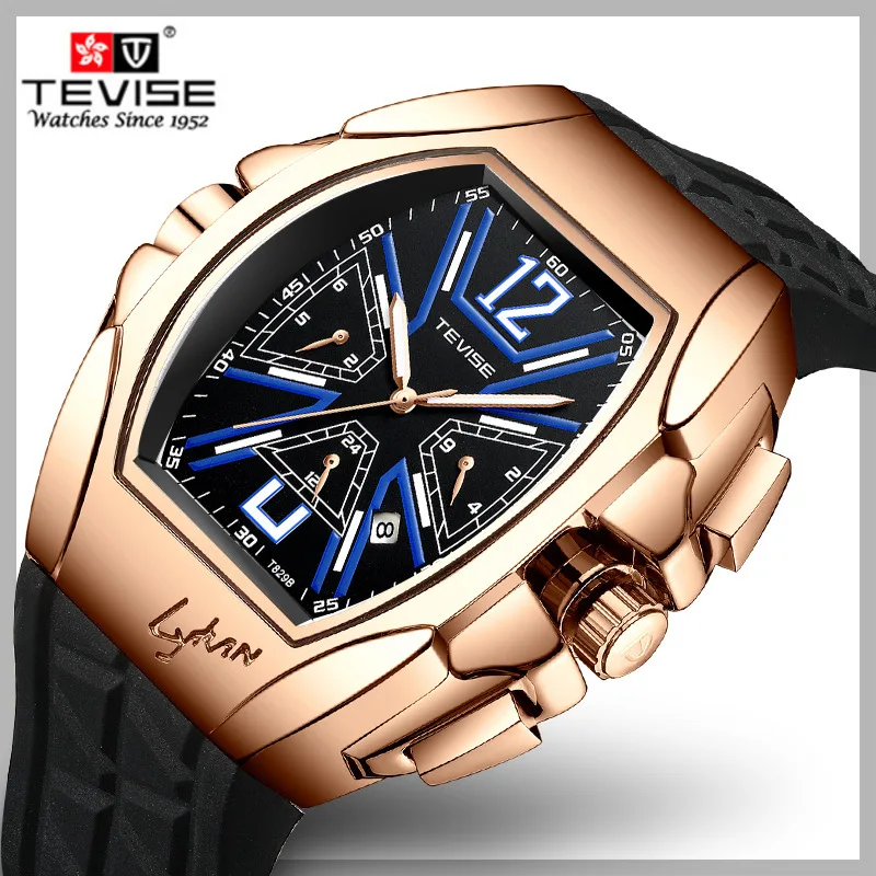 البحث عن معلوماتمعلومات اضافية العلامة التجارية الكلمات TEVISE الساعات الرجال سيليكون حزام التلقائي الميكانيكية الرجال الساعات عارضة ساعة اليد الصغيرة ثانية Relogio Masculino