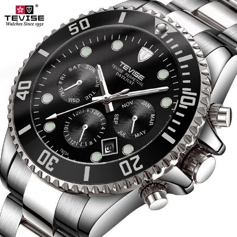 صور ل انخفاض الشحن Tevise العلامة التجارية التلقائية ووتش الرجال ساعات آلية الرياضة الفاخرة للماء لف ساعة اليد Relogio مسكولين