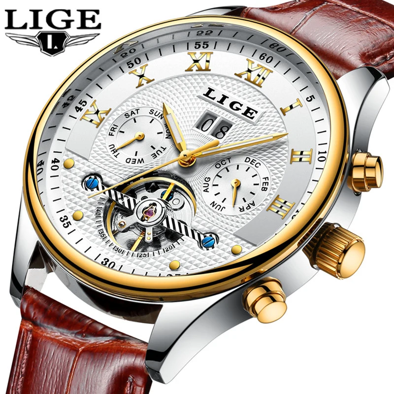 صور من ييج أزياء الرياضة ووتش رجال الأعمال جلد ساعة رجالي الساعات top ماركة فاخرة التلقائية الميكانيكية ووتش relogio masculino