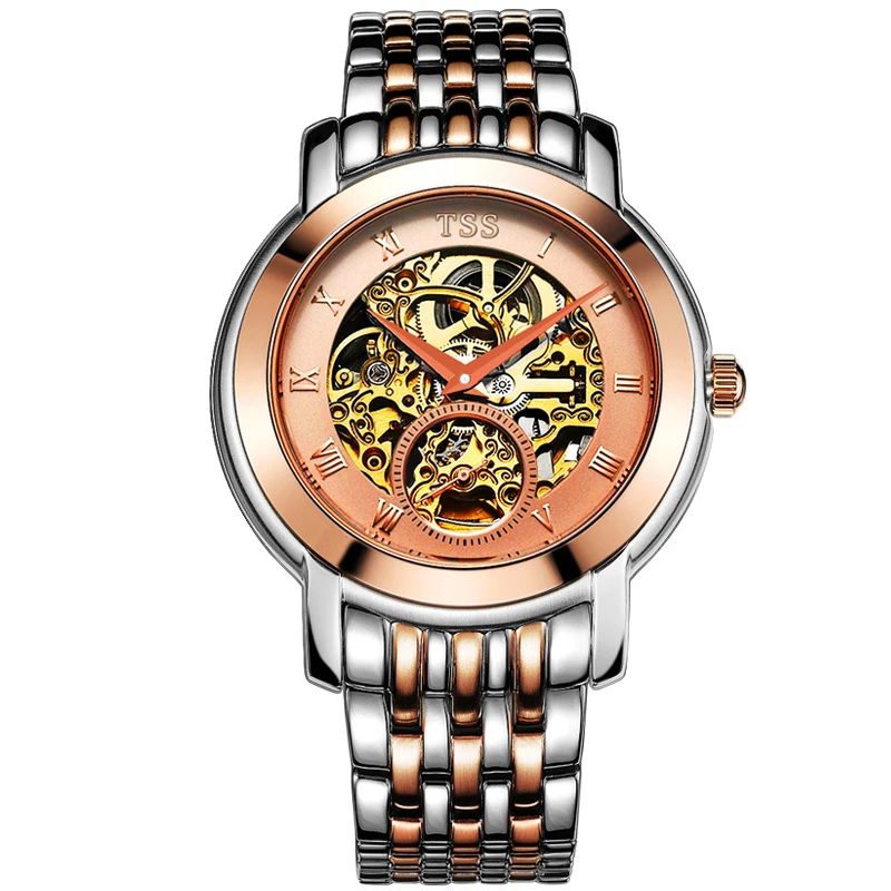 معرض ل TSS T8016 mecaniques ajourees الهيكل العظمي الساعات الرجال الفاخرة العلامة التجارية 2017 موضة الجوف التلقائي الميكانيكية ووتش الياقوت